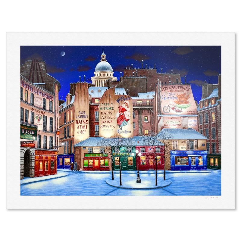 "Winter in Paris" is a limited edition serigraph on paper by Liudmila Kondakova, hand signed by the artist. Includes Certificate of Authenticity from Chalk & Vermilion Fine Arts. Measures approx. 32" x 41" (border), 27" x 36" (image).