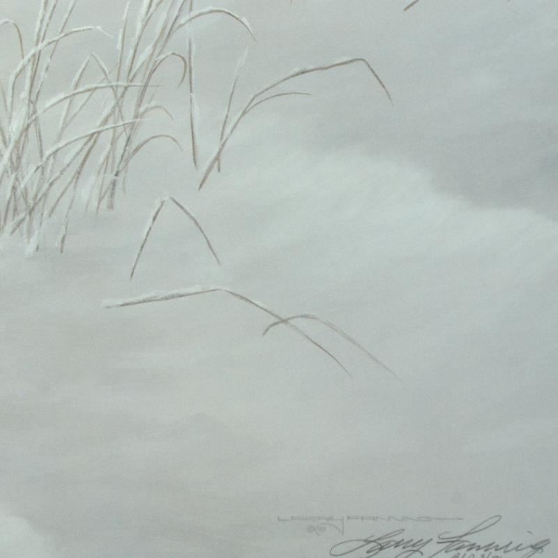 "Winter's Lace - Gray Wolves" is a limited edition lithograph on paper by Larry Fanning (1938-2014), numbered and hand signed with a Letter of Authenticity. Measures approximately 32" x 16" (image).
