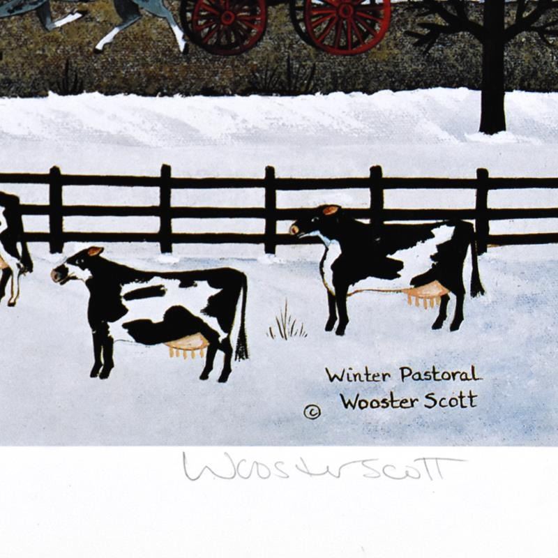 "Winter's Pastoral" is a limited edition lithograph on paper by Jane Wooster Scott, numbered and hand signed by the artist. Includes Letter of Authenticity. Measures approx. 13" x 13.5" (border), 12" x 12" (image).