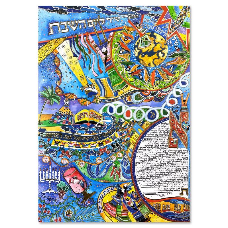 "Woman of Valor" is a limited edition serigraph with gold foil on paper by Rafael Abecassis. The piece comes hand signed by the artist, numbered, and with a letter of authenticity. Measures approximately 13" x 9".