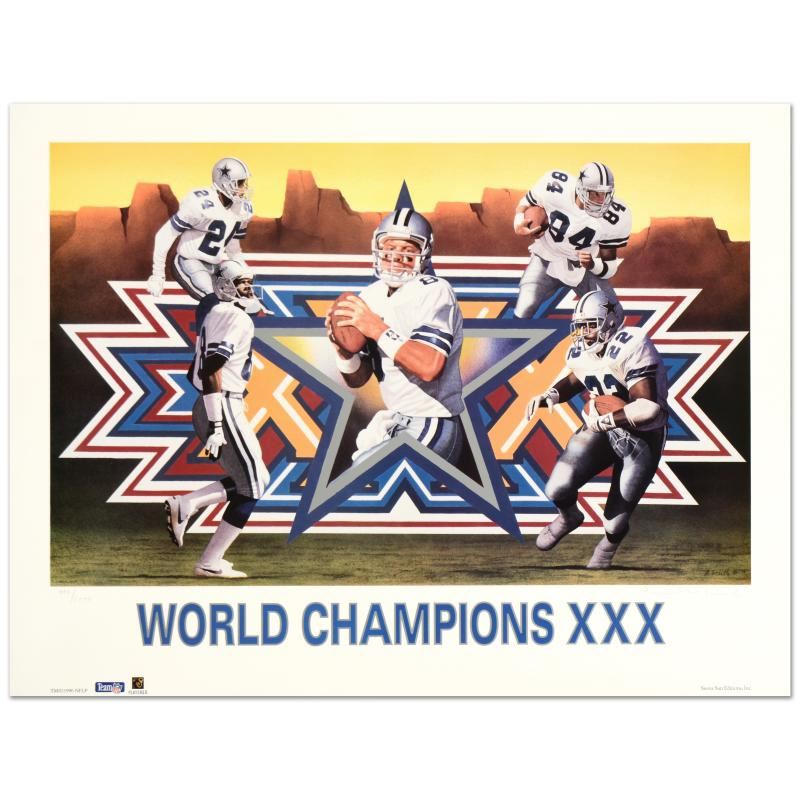 "World Champion XXX (Cowboys)" is a limited edition lithograph on paper dated (1996) by Daniel M. Smith, numbered and hand signed by the artist! Includes Certificate of Authenticity! Measures approx. 28" x 21.5" (with border), 25" x 18" (image).
