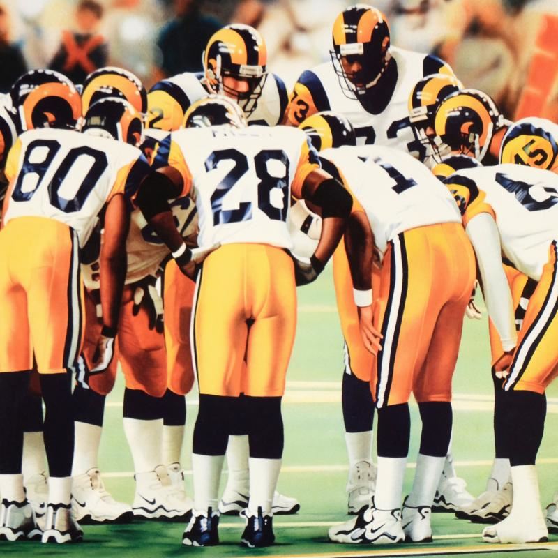 "World Champion XXXIV (Rams)" is a limited edition lithograph on paper dated (2000) by Daniel M. Smith, numbered and hand signed by the artist! Includes Certificate of Authenticity! Measures approx. 24.5" x 19.5" (with border), 22.5" x 15" (image).