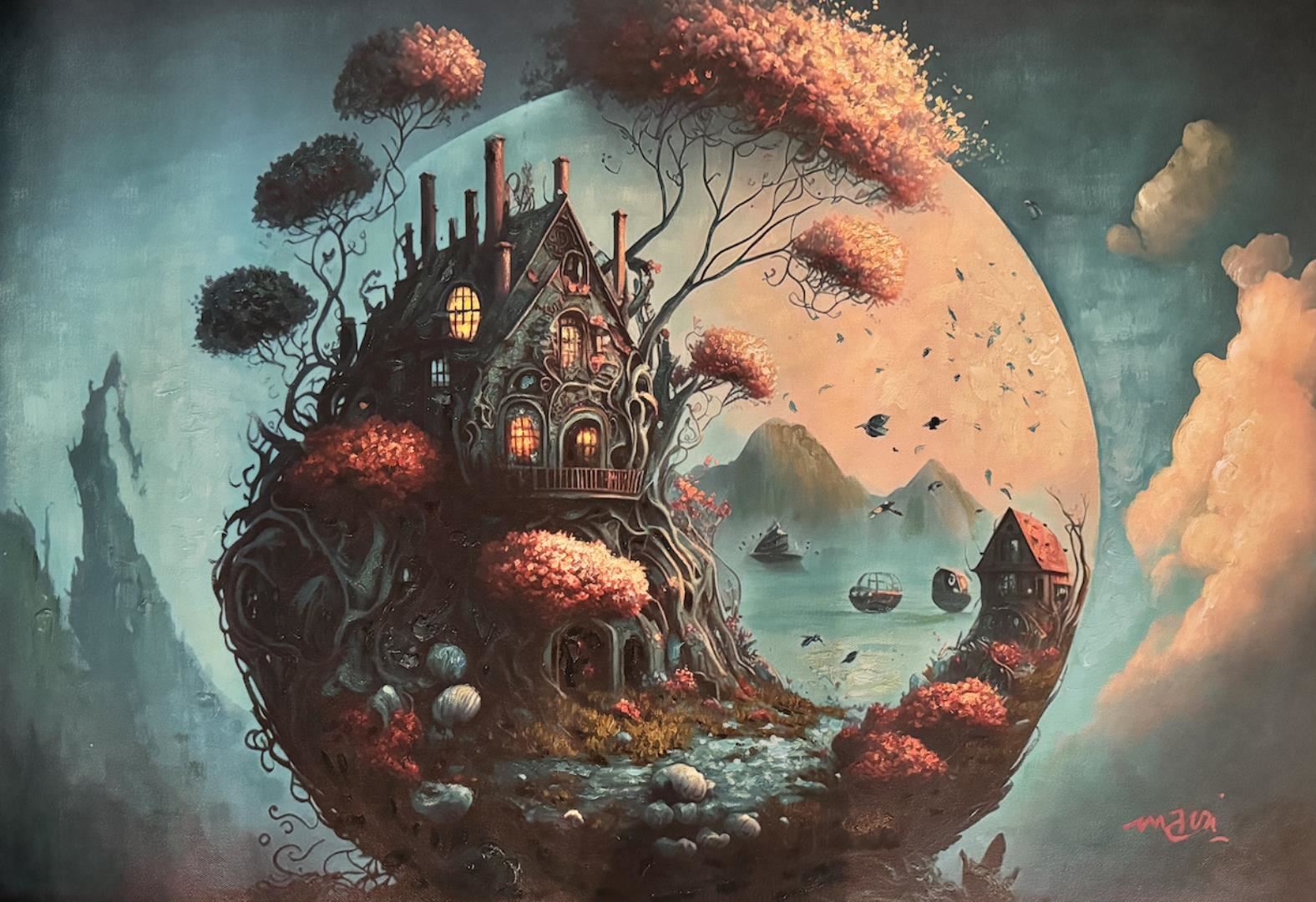 A stunning Artpiece in very surreal style, by a young American artist Mani. 20"x30" original on canvas w/ COA