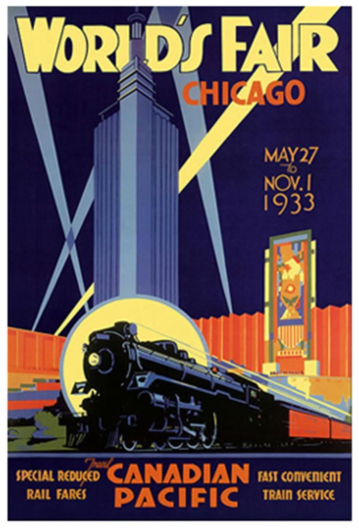 World's Fair Chicago, 1933 by Fraser. Open Unsigned Offset Lithograph. Dimensions: 18.5 x 14.5. Excellent Condition.