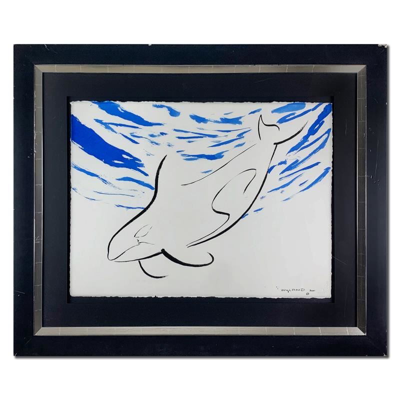 "Orca" is a framed original painting on paper by Wyland. Hand signed by the artist, this piece comes with a letter of authenticity. The frame shows notable wear and may need to be replaced. Measures approx. 36" x 43" (framed), 22" x 30" (image).