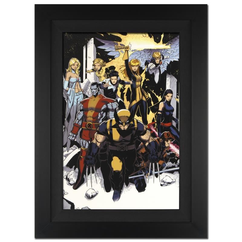 A piece of comic book history, this limited edition, from original art by Chris Bachalo, depicts characters from the iconic X-Men team. Known for his quirky style, Chris Bachalo has illustrated issues of X-Men Unlimited and Ghost Rider. "X-Men: Curse of the Mutants - Storm and Gambit #1" is an extremely limited edition giclee on canvas by Chris Bachalo presented by Marvel Comics, hand signed by the great Stan Lee and numbered out of only 10! This piece comes custom framed and is ready to hang. Includes Certificate of Authenticity! Measures approx. 25" x 34" (with frame); 18" x 27" (image).