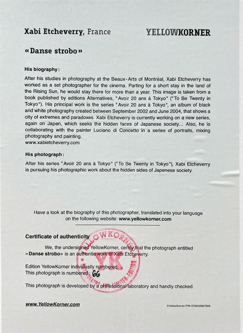 Xabi Etcheverry France Danse Strobo YellowKorner Certified Photograph. Certificate of Authenticity from YellowKorner affixed to the back. Matted Dimensions 16"x20". Protected with Clear Mylar Sleeve.