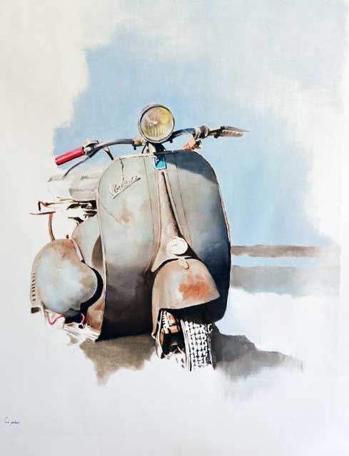 YAHAV **VESPA ** SIGNED ORIGINAL . Artist: Lior Yahav - Title: Vespa - Medium: Fine Art Giclee on Canvas - Edition: 9 - Signature: Hand-signed by the artist - Image Size: Approximately 25 inches x 20 inches - Framed: Unframed on Unstretched Canvas - Biography: Lior Yahav was born in 1973 in a suburb of Tel Aviv to a Yemenite family, most of whom are dedicated to art, the manufacture of authentic jewelry, and painting. His father and uncle worked for over fifty years in the professional restoration and framing of paintings. Lior was exposed to art from his early years, and already as a youngster he saw it as his calling. - In his teens, Lior took up painting as a hobby. In 1996, when he was 23 years old, he decided to take the next step in his artistic development and went to France, first to Paris and a short while latter to Pau, the capital of the Pyrénées-Atlantiques. It is there that he began his formal education at Pau University's Department of Art. - Lior returned to Tel Aviv when he was in his early 30s. There, he pursued his painting career while at the same time continuing his art studies at Ascola College in the city. - Upon completing his academic courses, he studied with the famed hyper-realistic artist Adam Gershoni. This artist exerted a great influence on Lior's artistic style, especially his technical abilities and his artistic worldview. - Lately, Lior's style has undergone some changes. He now attempts to paint the characters that make up the composition in his paintings using a technique that is less realistic and more expressionistic and freer. - In his paintings, Lior attempts to freeze people's daily moments and actions in public spaces while emphasizing movement, light, and shadows. - Warranty: Item GUARANTEED to be as described