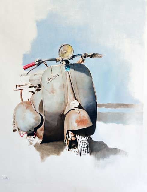 YAHAV **VESPA ** SIGNED ORIGINAL . Artist: Lior Yahav - Title: Vespa - Medium: Fine Art Giclee on Canvas - Edition: 9 - Signature: Hand-signed by the artist - Image Size: Approximately 25 inches x 20 inches - Framed: Unframed on Unstretched Canvas - Biography: Lior Yahav was born in 1973 in a suburb of Tel Aviv to a Yemenite family, most of whom are dedicated to art, the manufacture of authentic jewelry, and painting. His father and uncle worked for over fifty years in the professional restoration and framing of paintings. Lior was exposed to art from his early years, and already as a youngster he saw it as his calling. - In his teens, Lior took up painting as a hobby. In 1996, when he was 23 years old, he decided to take the next step in his artistic development and went to France, first to Paris and a short while latter to Pau, the capital of the Pyrénées-Atlantiques. It is there that he began his formal education at Pau University's Department of Art. - Lior returned to Tel Aviv when he was in his early 30s. There, he pursued his painting career while at the same time continuing his art studies at Ascola College in the city. - Upon completing his academic courses, he studied with the famed hyper-realistic artist Adam Gershoni. This artist exerted a great influence on Lior's artistic style, especially his technical abilities and his artistic worldview. - Lately, Lior's style has undergone some changes. He now attempts to paint the characters that make up the composition in his paintings using a technique that is less realistic and more expressionistic and freer. - In his paintings, Lior attempts to freeze people's daily moments and actions in public spaces while emphasizing movement, light, and shadows. - Warranty: Item GUARANTEED to be as described