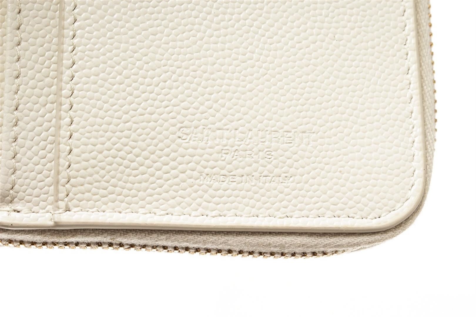 YSL Saint Laurent White Multicolor Pebbled Leather Compact Zippy Wallet
