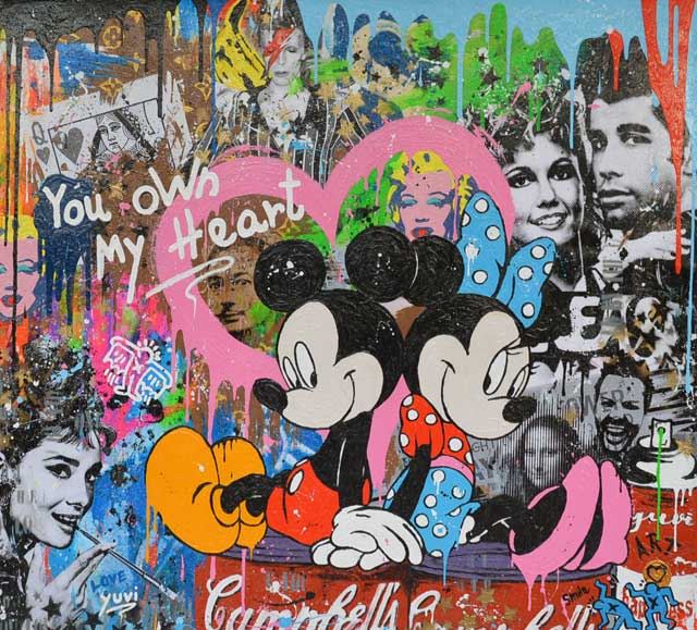 YUVI You Own My Heart ORIGINAL SIGNED. Artist: Yuvi - Title: You Own My Heart - Medium: Original Acrylic on Canvas - Signature: Hand-signed by the artist - Image Size: Approximately 36 inches x 40 inches - Framed: Stretched and Framed ready to hang- Biography: Yuvi describes himself as a graffiti inspired pop artist saying: "The street as the graffiti artist's main source of inspiration makes the work accessible, authentic, and relatable." The animation and vibrancy in each work takes us straight back to the streets which inspired them, and has won him exhibitions and admirers in places as diverse as New York and New Delhi. - Yuvi combines traditional techniques with digital technology. His characters and their settings are formed from paint, printed paper cuttings, layers of old newspaper clippings, sketches, silk screen prints, various glues, inks, spray paints, sand, glass fragments and more. He often uses his bare hands which means he has an intense physical relationship with every piece he creates; to look at his hands after a day in his studio is to understand his dedication, passion, and love for his work. The finished composition is intensely tactile and the spectator is invited to feel the work with their hands. - Warranty: Item GUARANTEED to be as described
