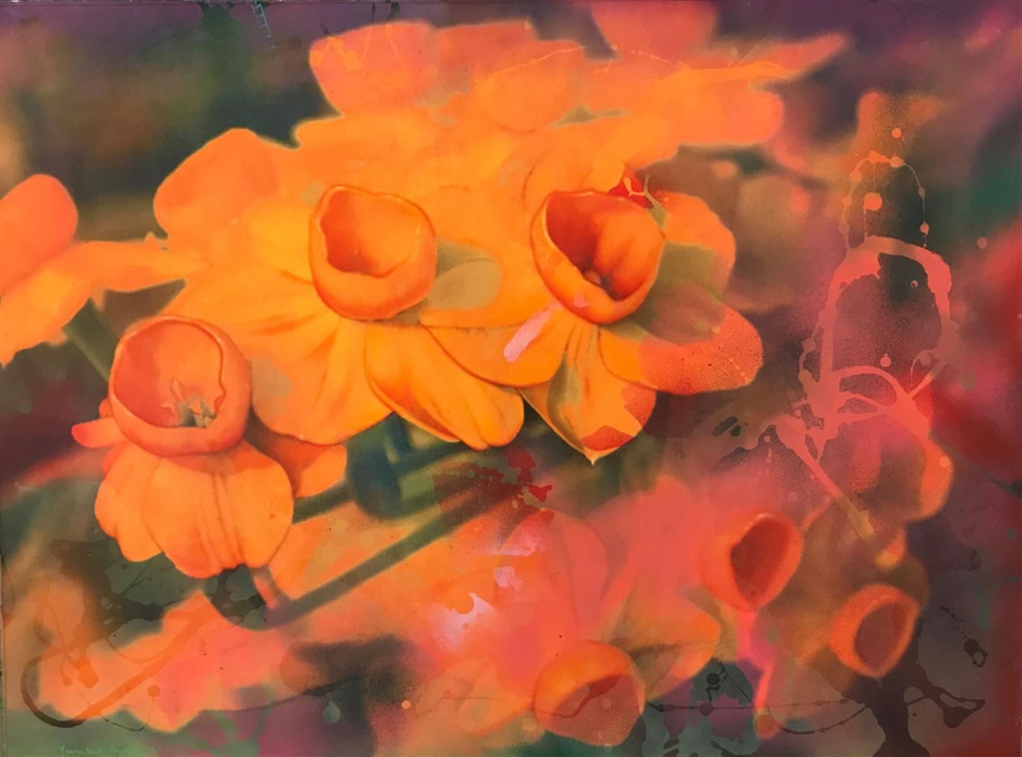Yankel Ginzburg "Three Bells" is an original acrylic on board, 30x40 inches signed by the artist.