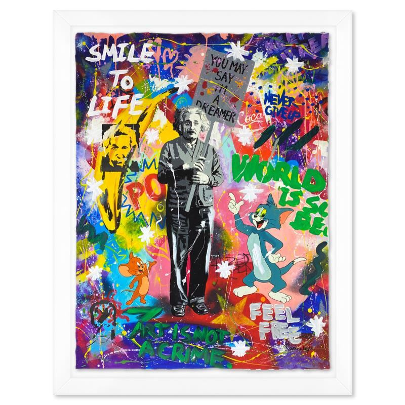 You May Say Im a Dreamer by Rovenskaya Original. Please see photos and description for all available information. "You May Say Im a Dreamer" is a one-of-a-kind mixed media on deckle edge paper by Nastya Rovenskaya, Hand signed by the artist. This piece comes floating in a custom frame. Includes Letter of Authenticity. Measures approximately 44" x 34" (framed), 40" x 30" (image).