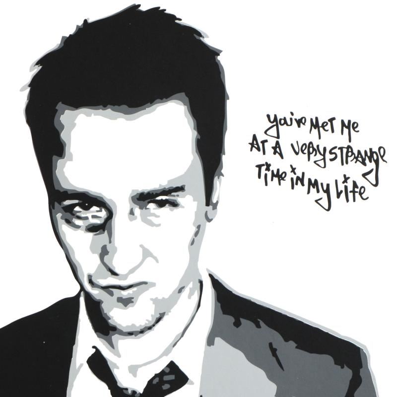 "You Met Me at a Very Strange Time" is a limited edition silkscreen serigraph on paper, numbered hand signed by the artist. This piece features Ed Norton from "Fight Club". Includes Certificate of Authenticity! Measures approx. Measures approx. 20" x 24" (with border); 16" x 19" (image).