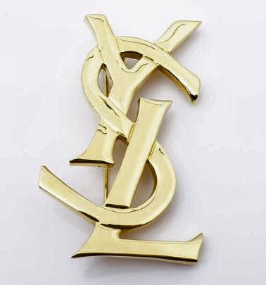Yves Saint Laurent Vintage pin brooch features gold-tone hardware with YSL logo and a safety-pin closure clasp.