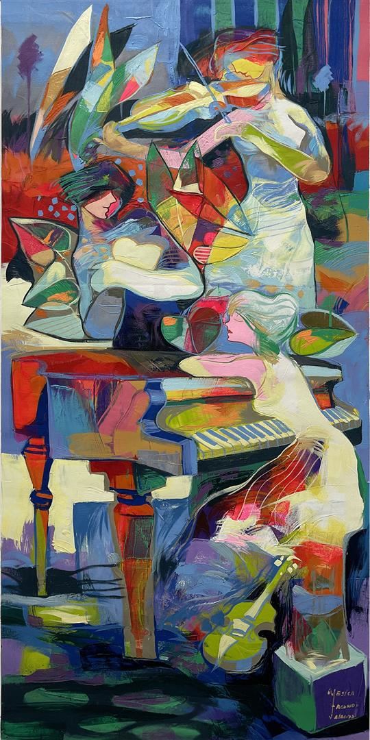 Phenomenal original oil on canvas. Hand signed by artists. Artwork comes with a certificate of authenticity. This artwork comes rolled. Size 30x63"