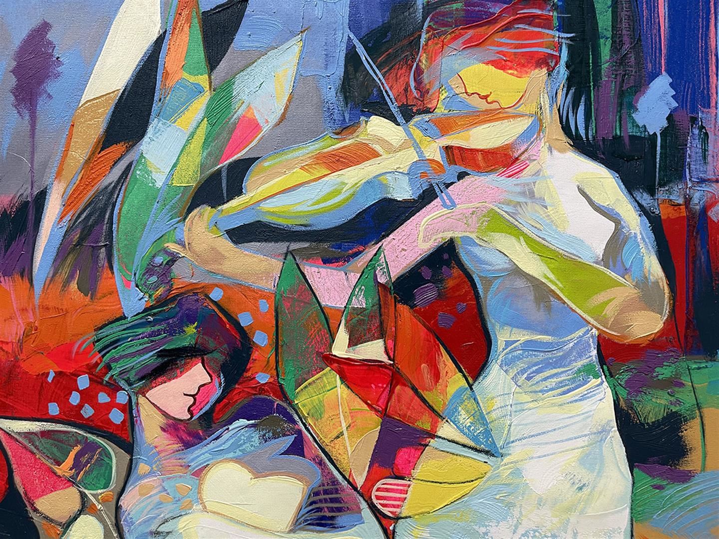 Phenomenal original oil on canvas. Hand signed by artists. Artwork comes with a certificate of authenticity. This artwork comes rolled. Size 30x63"