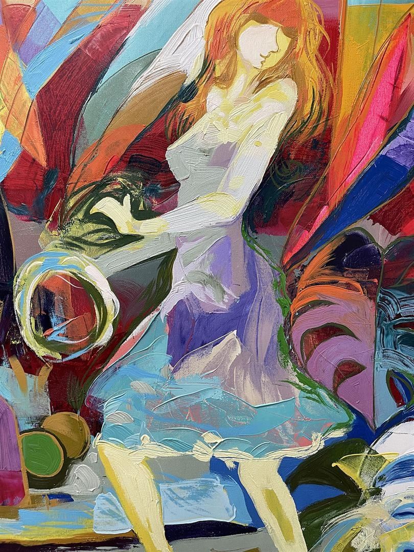 Beautiful original oil on canvas. Hand signed by artists. Artwork comes with a certificate of authenticity. This artwork comes rolled. Size 80x48"